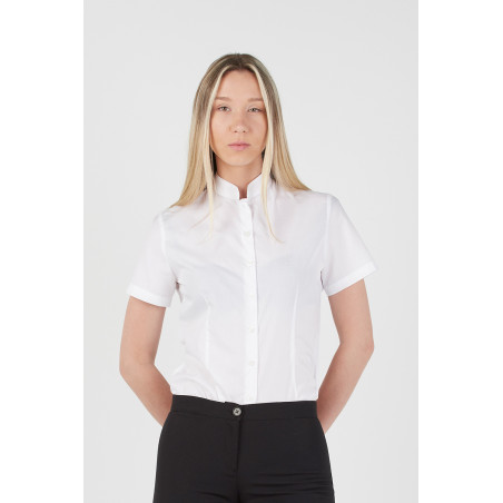 - Regular fit shirt, straight cut with front and back darts, adapted to all body types. - Well defined high mandarin collar. - Visible button closure. - Short sleeves for ease of movement. - Available in three colors.